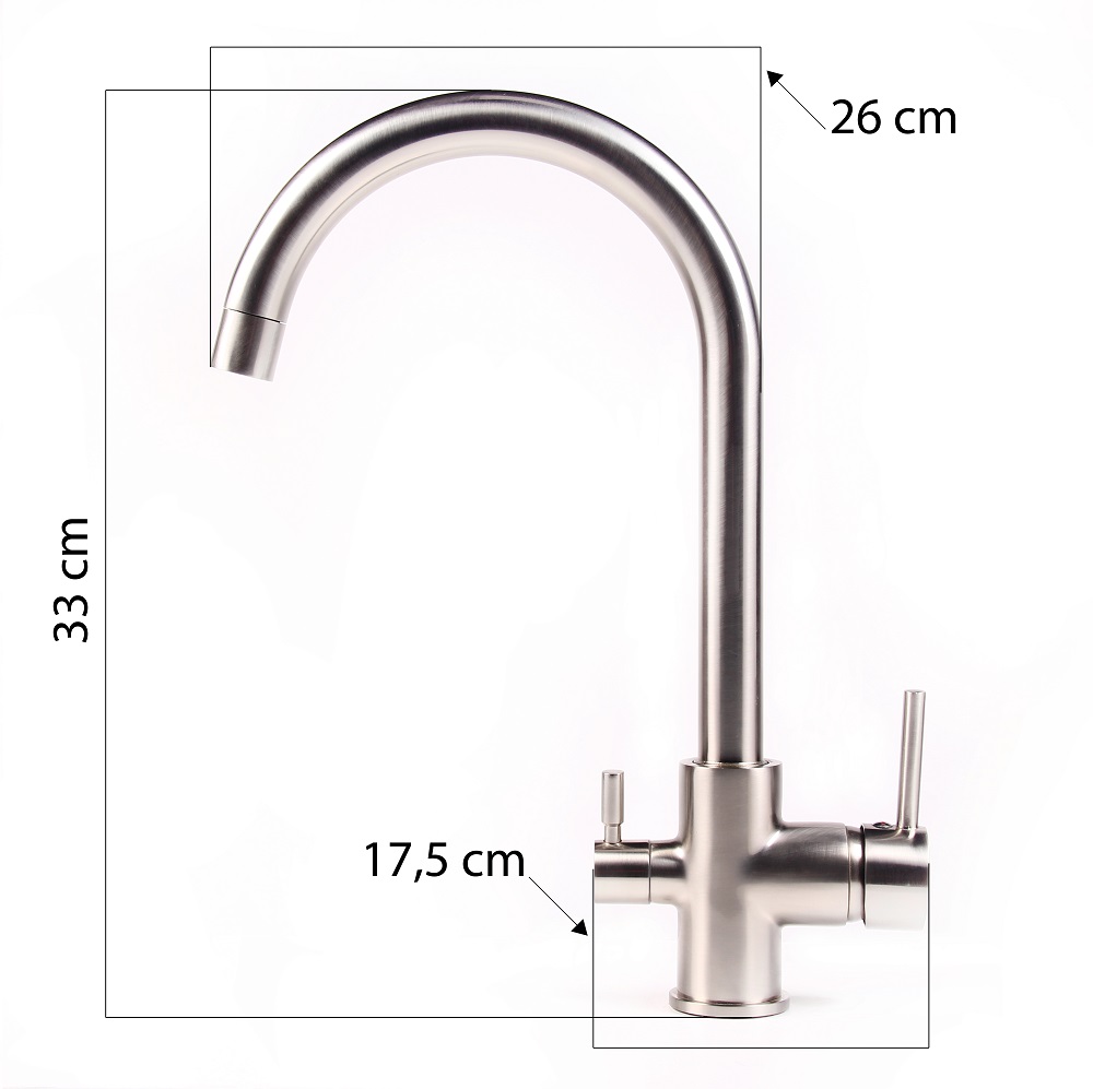 Kolm ühes segisti külma, kuuma ja joogiveevarustuse jaoks.