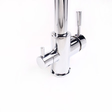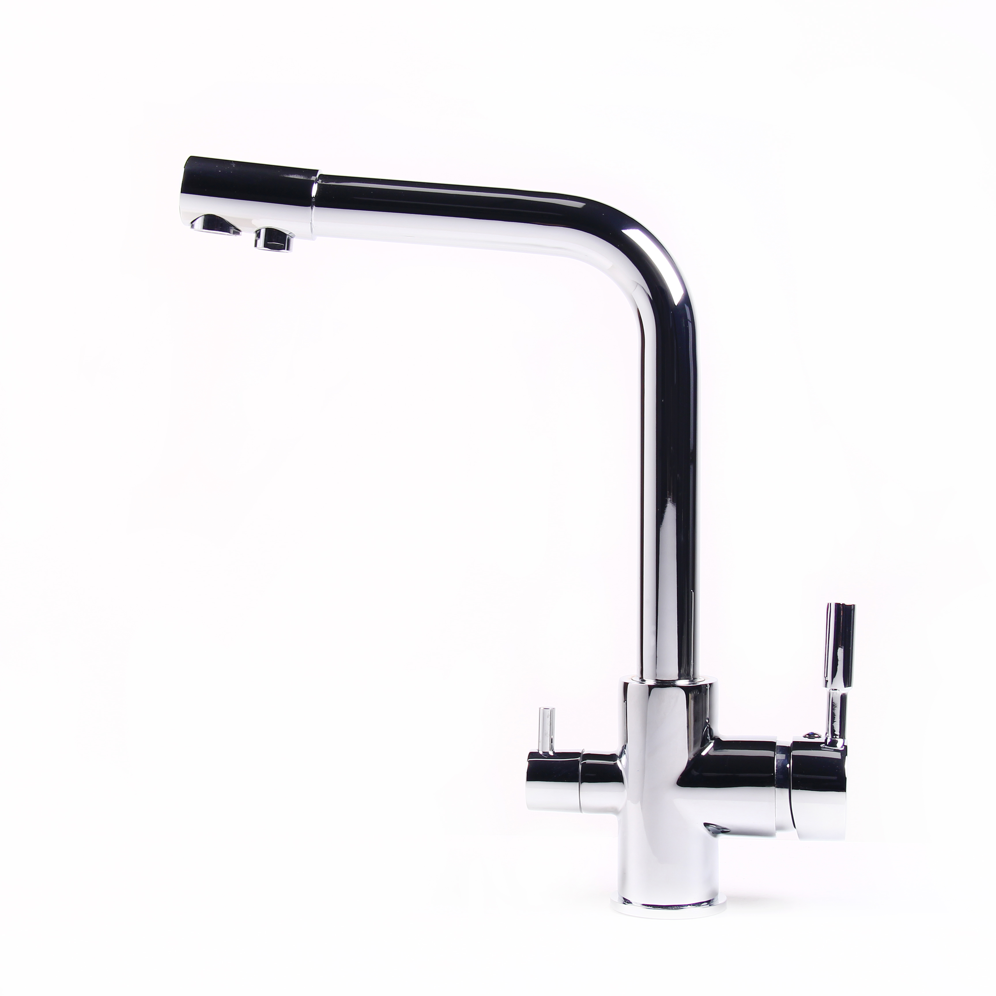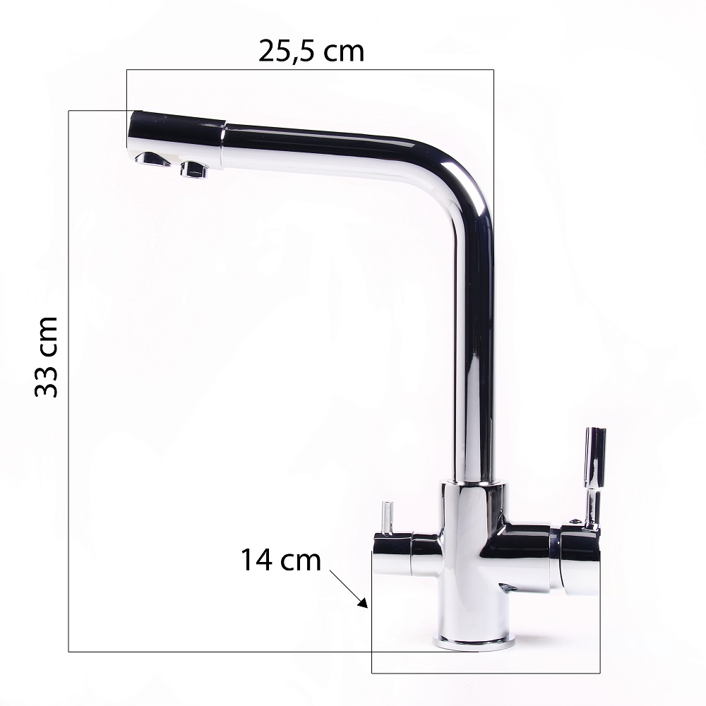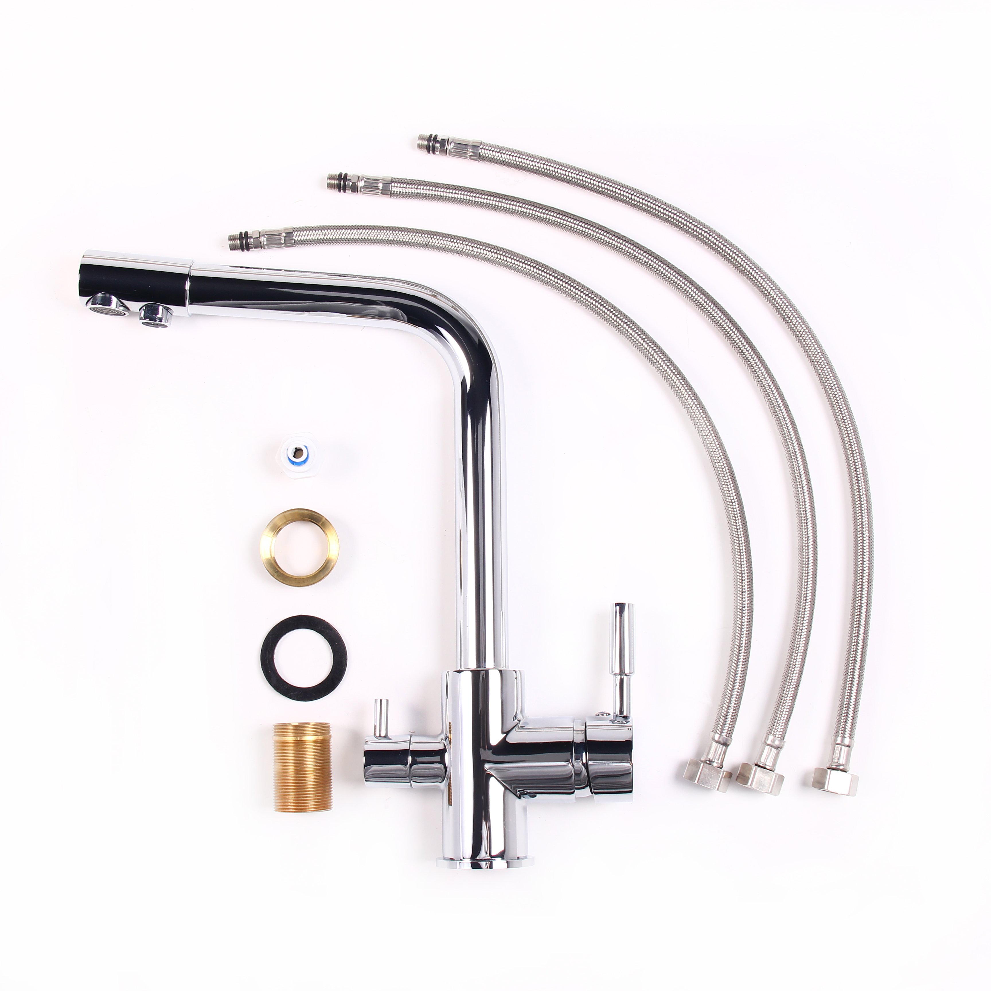 Metallist korpus tagab maksimaalse vastupidavuse.Tugev messingist korpus tagab vastupidavuse ja pikema eluea. Kõrgkvaliteetne poleeritud kroomitud viimistlus, mis takistab igapäevasest kasutamisest tingitud tuhmumist ja korrosiooni. Komplekti kuulub 3x paindlik segisti ühendus, kraan ja kraanigaator. Lihtne paigaldada. Kahekordne veepihusti disain. Üks kuum / külm vesi, teine on puhas vesi. Eemaldab filtreeritud vee jaoks eraldi joogi kraani.