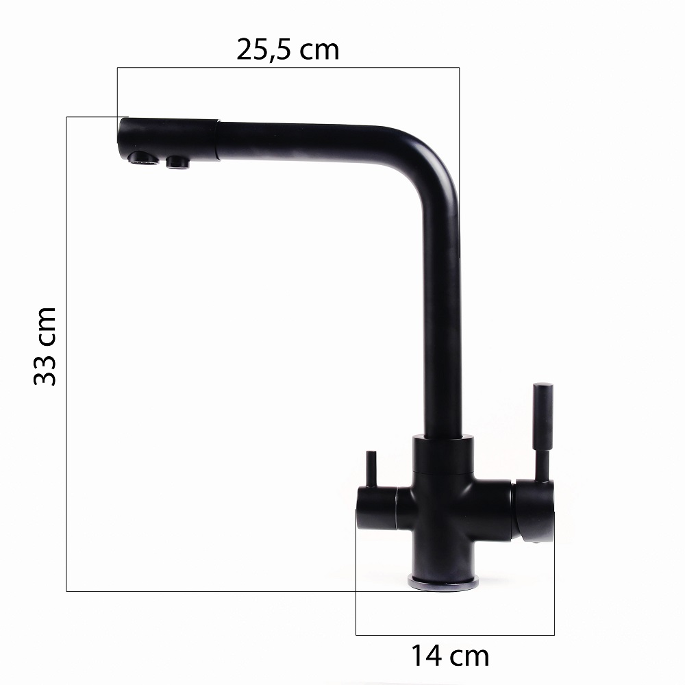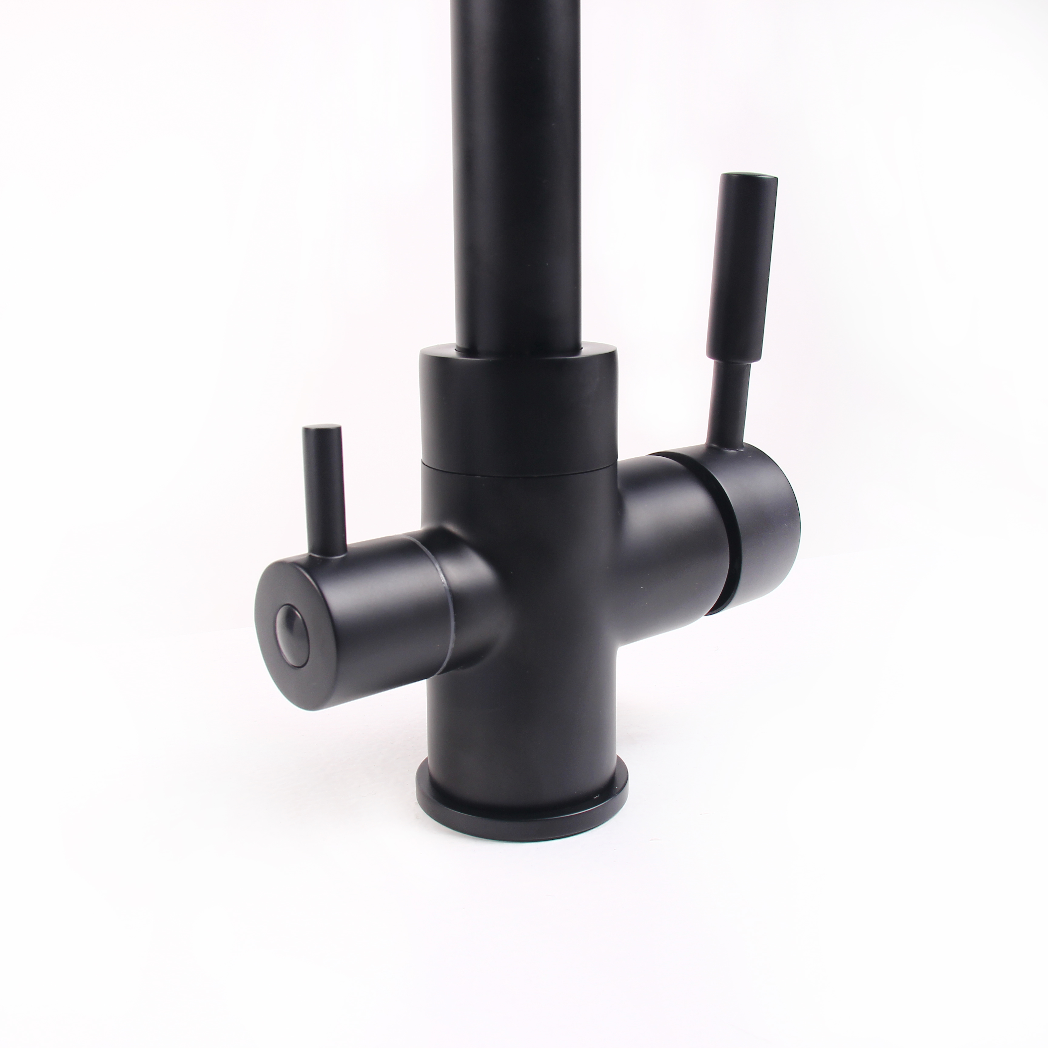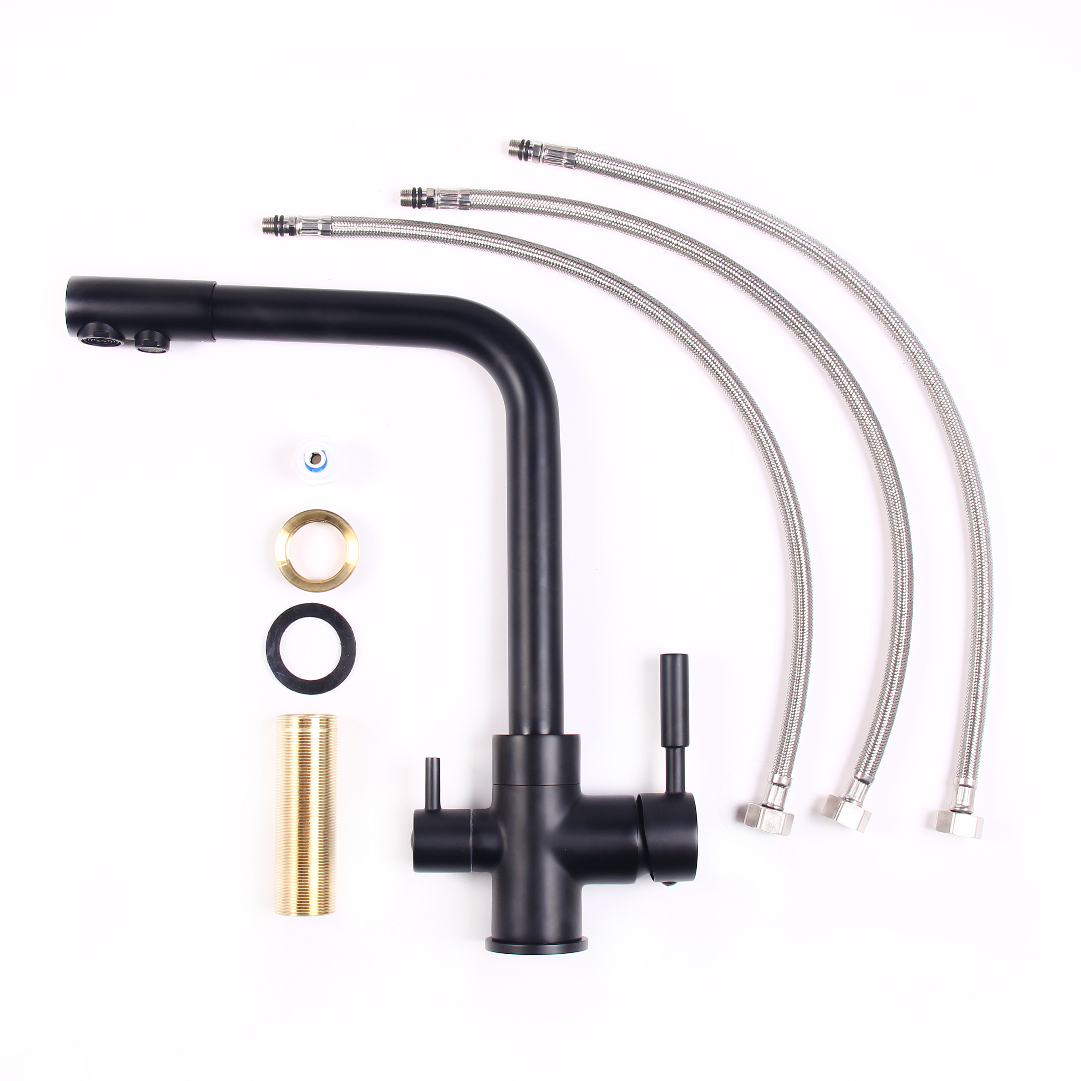 Metallist korpus tagab maksimaalse vastupidavuse.Tugev messingist korpus tagab vastupidavuse ja pikema eluea. Kõrgkvaliteetne poleeritud kroomitud viimistlus, mis takistab igapäevasest kasutamisest tingitud tuhmumist ja korrosiooni. Komplekti kuulub 3x paindlik segisti ühendus, kraan ja kraanigaator. Lihtne paigaldada. Kahekordne veepihusti disain. Üks kuum / külm vesi, teine on puhas vesi. Eemaldab filtreeritud vee jaoks eraldi joogi kraani.