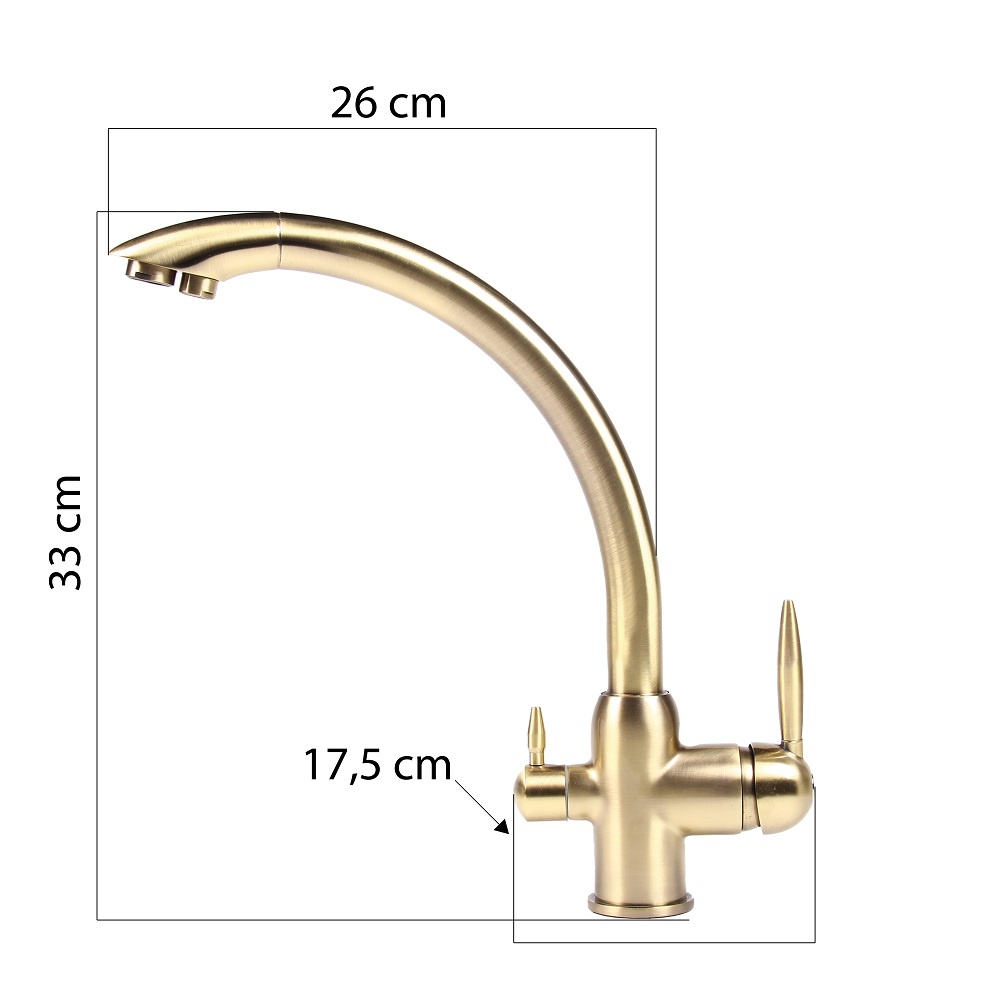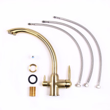 Metallist korpus tagab maksimaalse vastupidavuse.Tugev messingist korpus tagab vastupidavuse ja pikema eluea. Kõrgkvaliteetne poleeritud kroomitud viimistlus, mis takistab igapäevasest kasutamisest tingitud tuhmumist ja korrosiooni. Komplekti kuulub 3x paindlik segisti ühendus, kraan ja kraanigaator. Lihtne paigaldada. Kahekordne veepihusti disain. Üks kuum / külm vesi, teine on puhas vesi. Eemaldab filtreeritud vee jaoks eraldi joogi kraani.