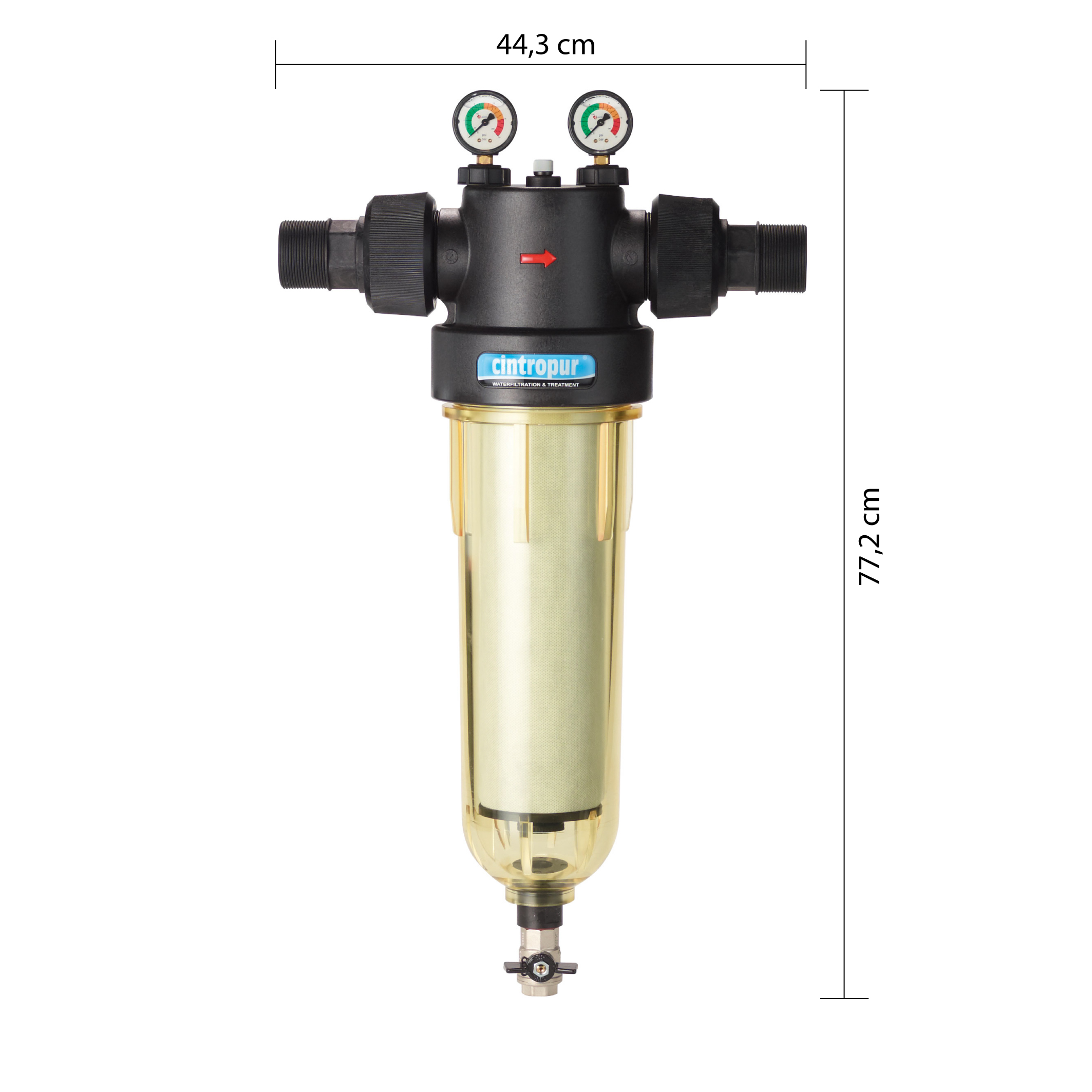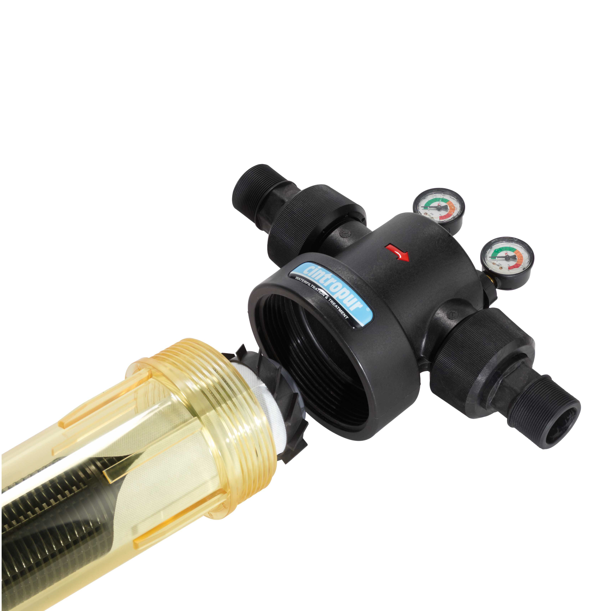 CINTROPUR® tiivik muudab vedeliku voo tsentrifugaalkeeriseks, visates suuremad osakesed valitud filtriümbrise mikron-suuruse alusel alla alumisse kaussi.