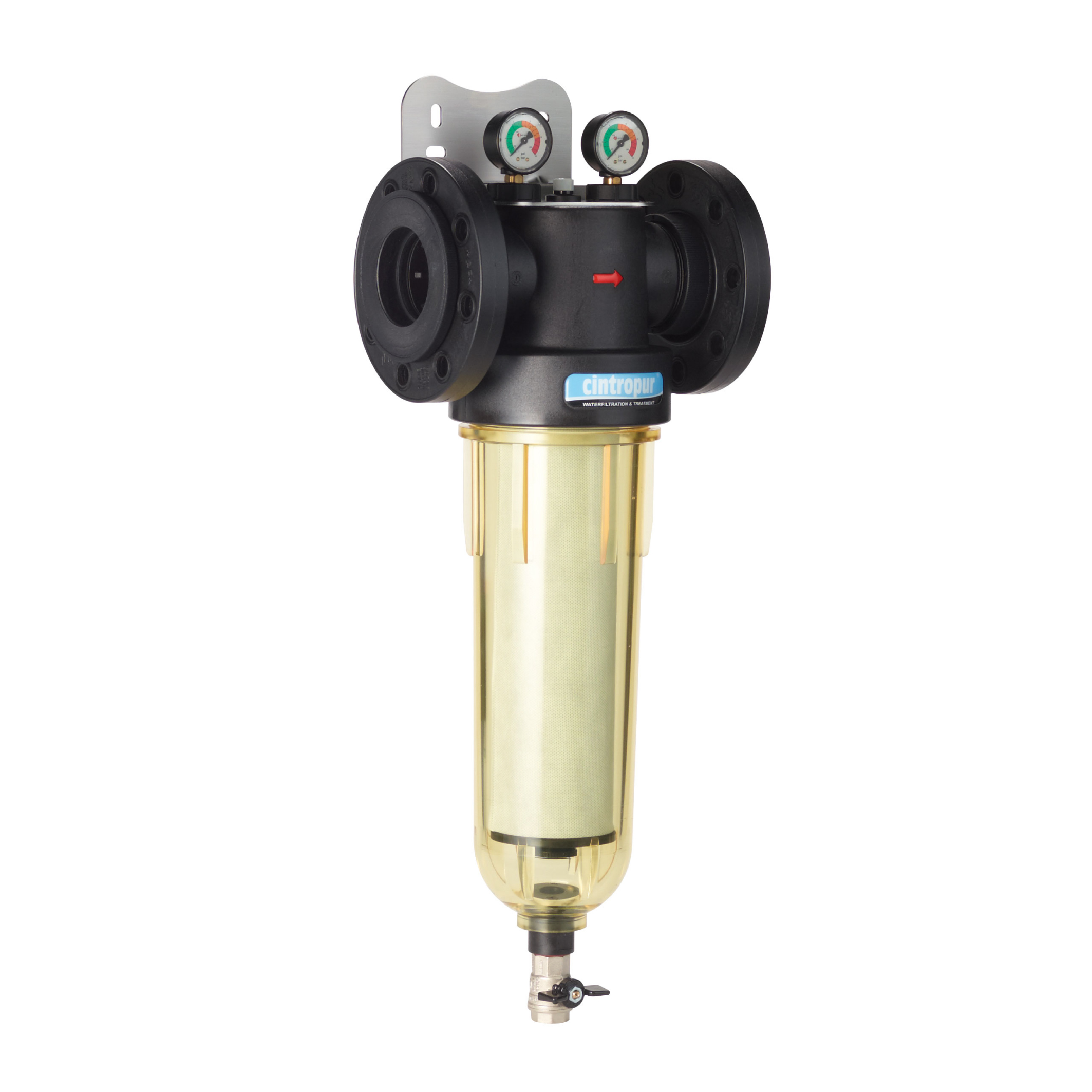 CINTROPUR® tiivik muudab vedeliku voo tsentrifugaalkeeriseks, visates suuremad osakesed valitud filtriümbrise mikron-suuruse alusel alla alumisse kaussi.