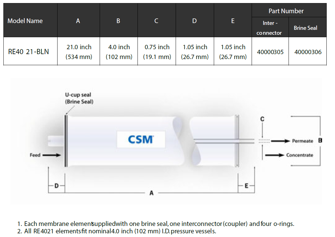 CSM pöördosmoosi membraan RE4021-BLN (1050 GPD)