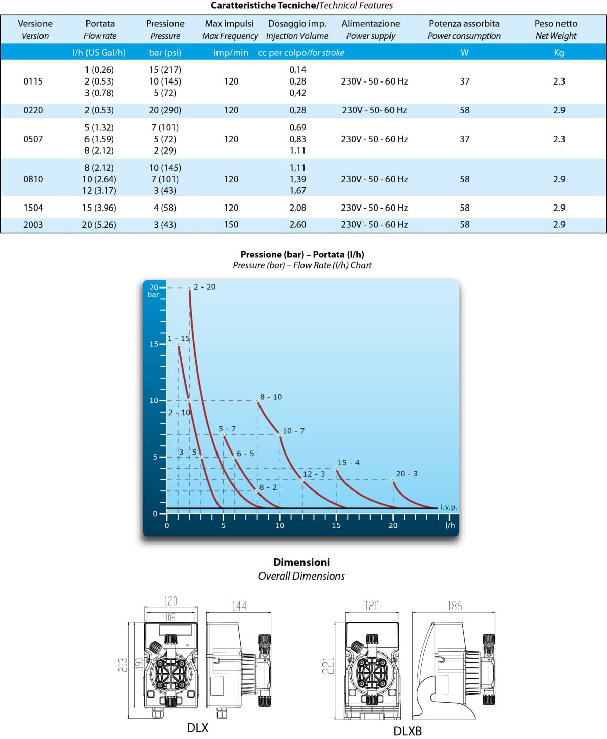 Kõrge töökindlus ja soodne hind teevad DLX seeriast ühe parima lahenduse doseerimissüsteemide turul. Tellimisel saab DLXB (jalale paigaldatav) versiooni tarnida tõstekäigu pikkuse regulaatoriga, mis võimaldab doseerimismahtu reguleerida 20–100% ulatuses.