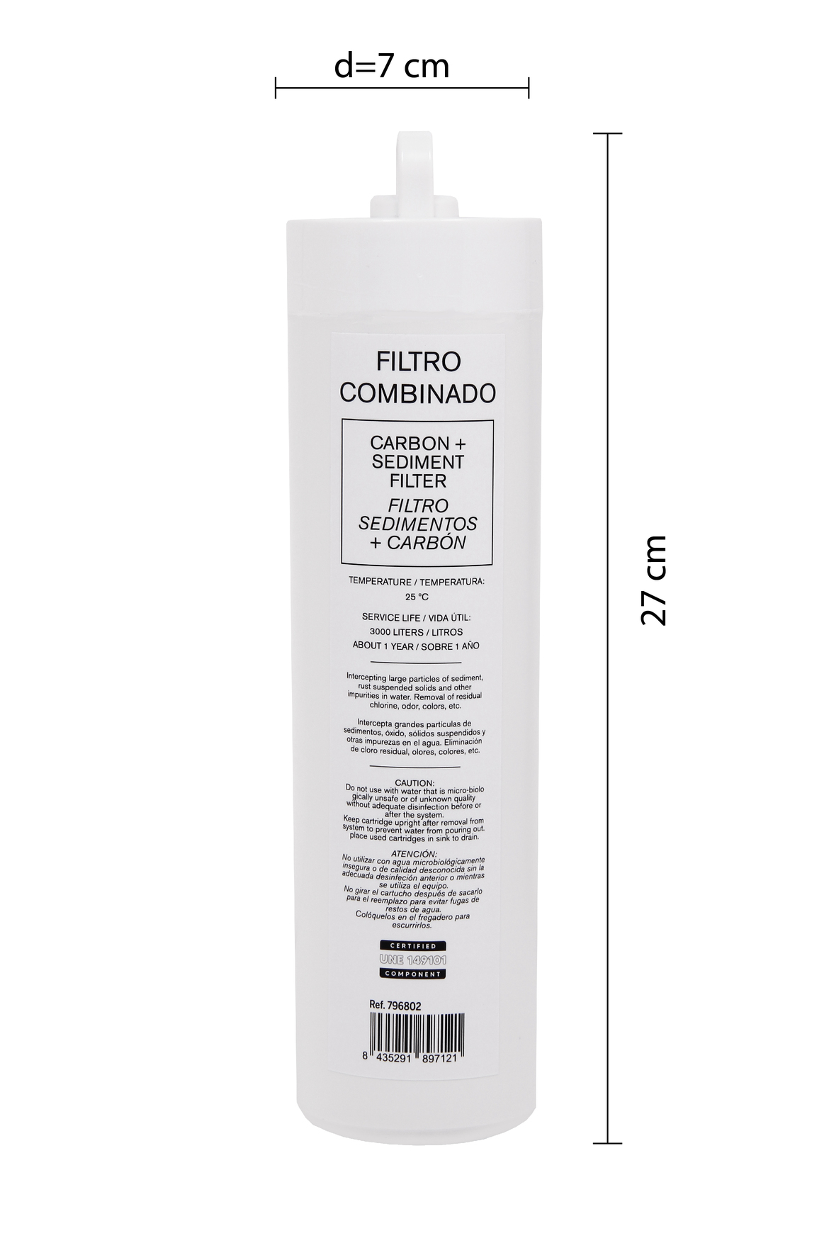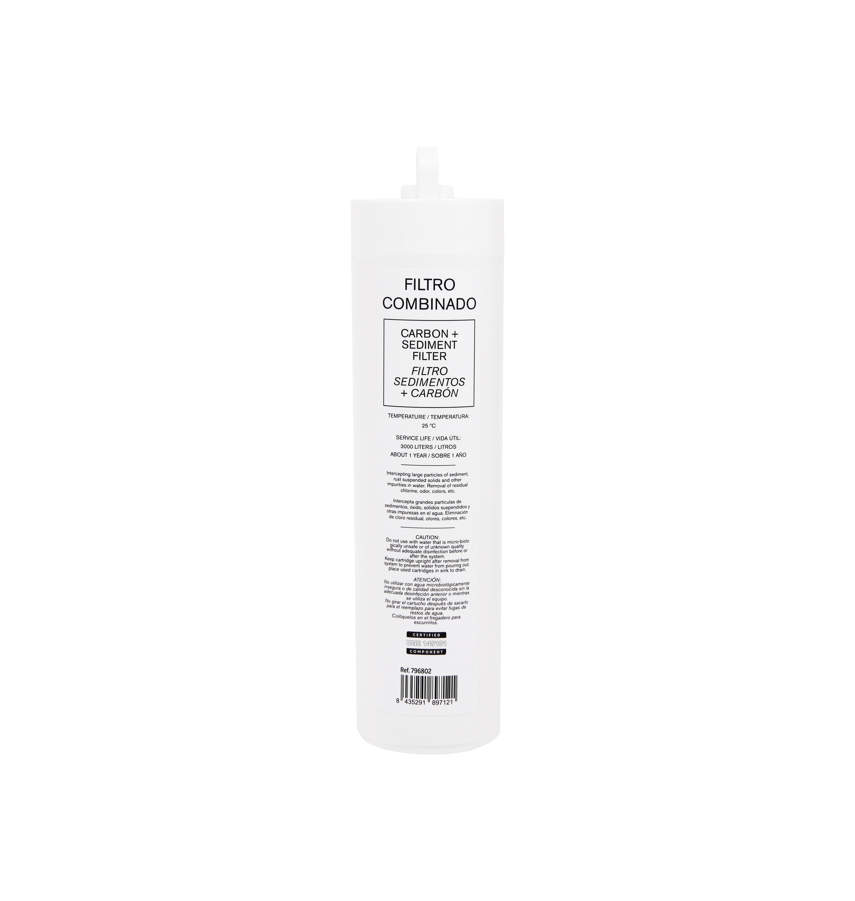 Universaalne kombineeritud kassett joogivee kvaliteedi parandamiseks, mis ühendab ühes korpuses mehaanilise filtreerimise ja aktiivsöe adsorptsiooni. Mehaaniline kiht püüab kinni liiva, rooste ja muud hõljuvad osakesed, aktiivsüsi vähendab jääkkloriini ning parandab maitse- ja lõhnaomadusi. Sobib igapäevaseks kasutamiseks köögis. Lihtsasti vahetatav kassett ERCANO süsteemidele PCF-tüüpi ühendusega.