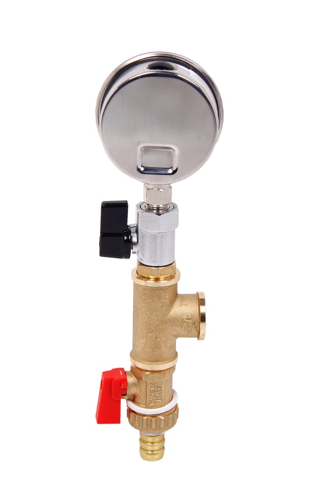 Kompaktne T-sõlm rõhu mõõtmiseks ja veeproovi võtmiseks filtrite, pehmendite ja katelde liinidel. Messingist korpus, selge sihverplaadiga manomeeter, mugav minikraan voolikuotsikuga.