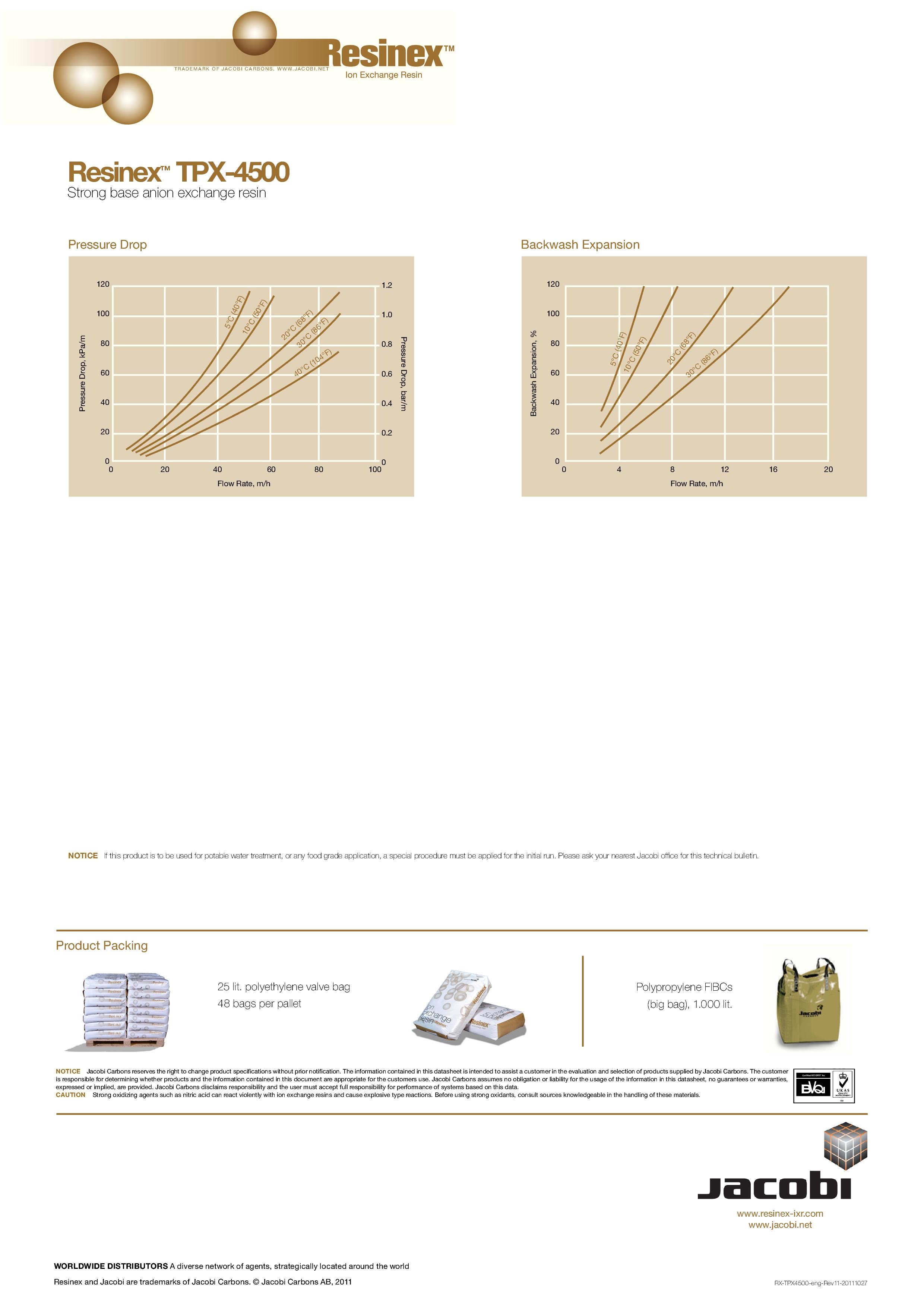 Resinex™ TPX-4500 on peamiselt välja töötatud kasutamiseks orgaanilise eemaldajana ja/või värvieemaldamiseks adsorbeeriva vaiguna.