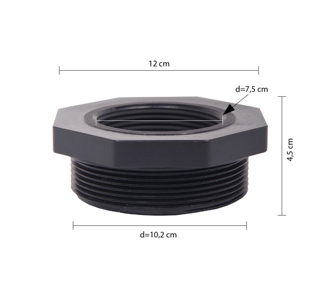 Adapteri liige filtripaagi kinnitusväljundile 2,5″/4″ võimaldab paagil ühenduda suurema läbimõõduga keermestatud liitmikega. Tootja WATEX, tootekood PE00120. See detail sobib ideaalselt olukorras, kus on vaja kohandada standardset filtripaaki 2,5-tollise keerdühendusega 4-tollise või vastupidi – tagades veefiltreerimise süsteemis tugeva ja hermeetilise ühenduse.