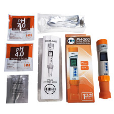 The PH-200 is a professional grade pH/Temp meter ideal for all pH testing water. With its advanced microprocessor it provides highly accurate dependable readings in such applications as hydroponics, purification applications, wastewater regulation, aquaculture, colloidal silver, labs & scientific testing, pools & spas, ecology testing, boilers & cooling towers, water treatment, wine, coffee, and agriculture.