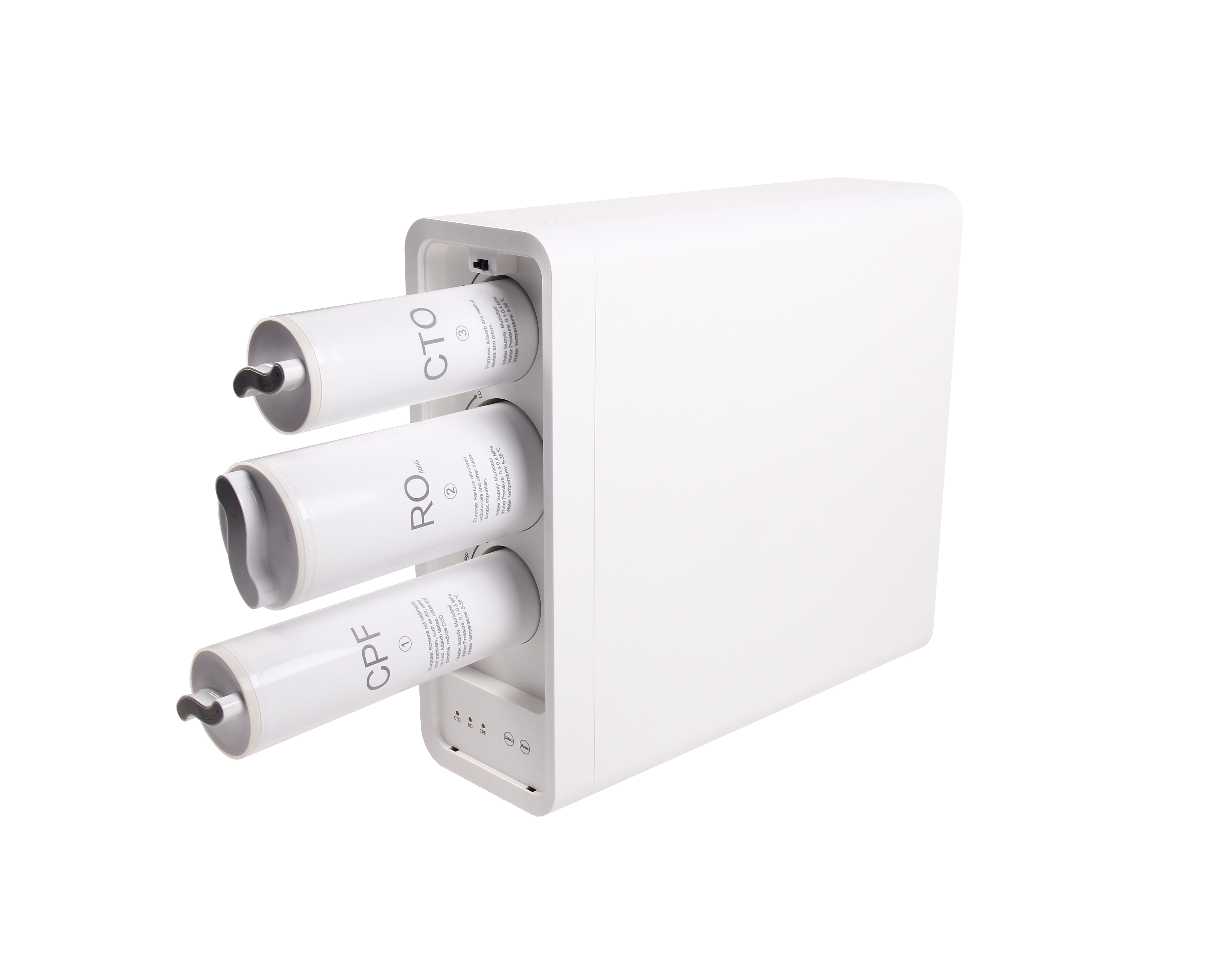 2. Pöördosmoosimembraan - vee puhastamise põhielement. Puhastab joogivee skaalale, bakteritele, viirustele, orgaanilistele ainetele, kolloididele, pestitsiididele, radioaktiivsetele osakestele, mikroobidele, vetikatele, raskemetallidele ja lahustunud mineraalidele.