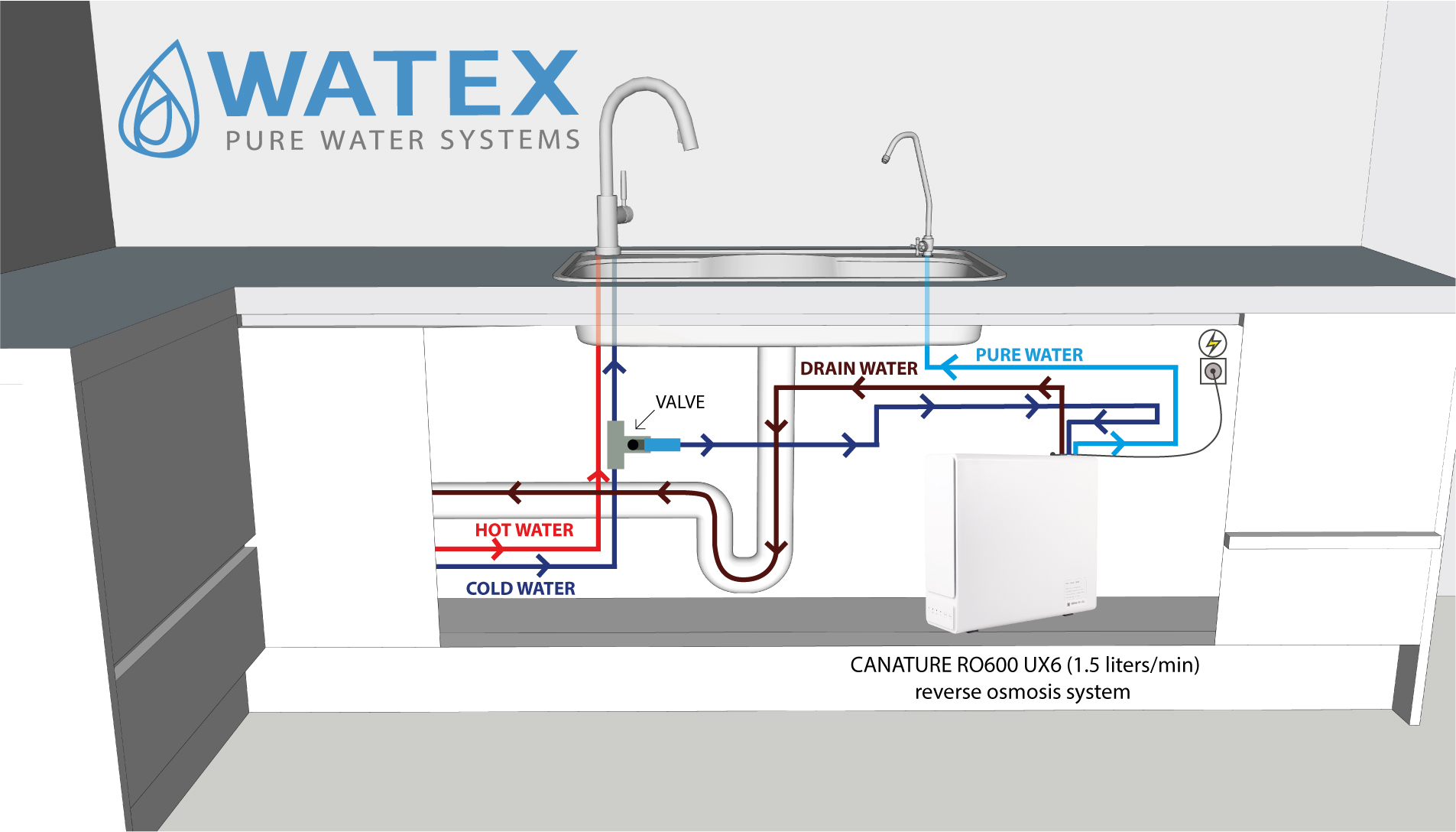 PurePlus on võimas pöördosmoosi joogiveesüsteem kaasaegse disainiga. See seade tagab kõrge kvaliteediga vee puhastamise tootlikkusega 1.5 liters/min, muutes selle suurepäraseks lahenduseks kodudele, kontoritele ja toitlustusasutustele. Sisseehitatud LED-indikaatorid näitavad kasseti kulumist, võimaldades hõlpsalt tuvastada ja õigel ajal vahetada. Komplekti kuulub täielik paigalduskomplekt, mis muudab süsteemi kiireks ja mugavaks kasutamiseks.