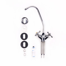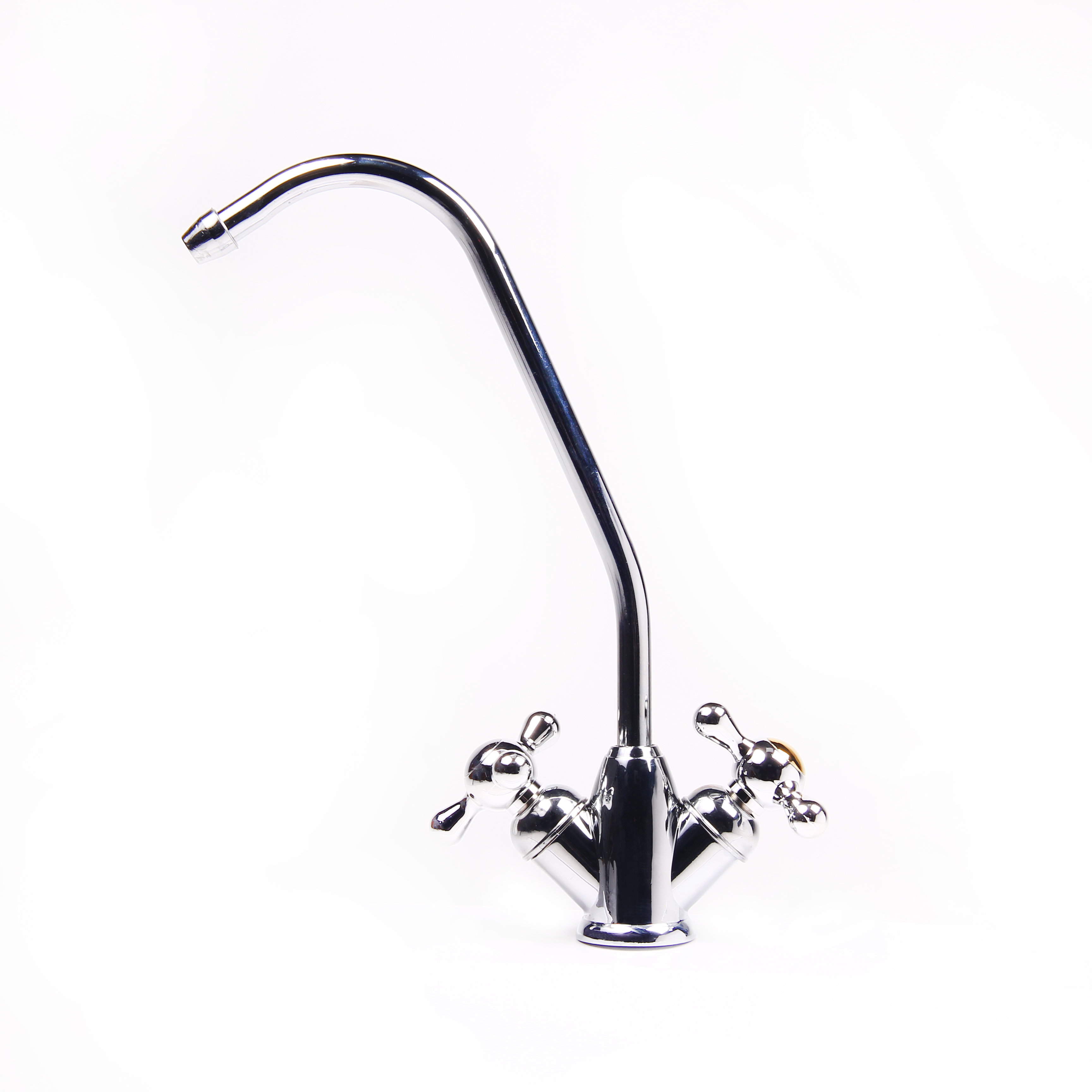 Keraamiliste ventiilidega kaheharuline kroomitud kraan.