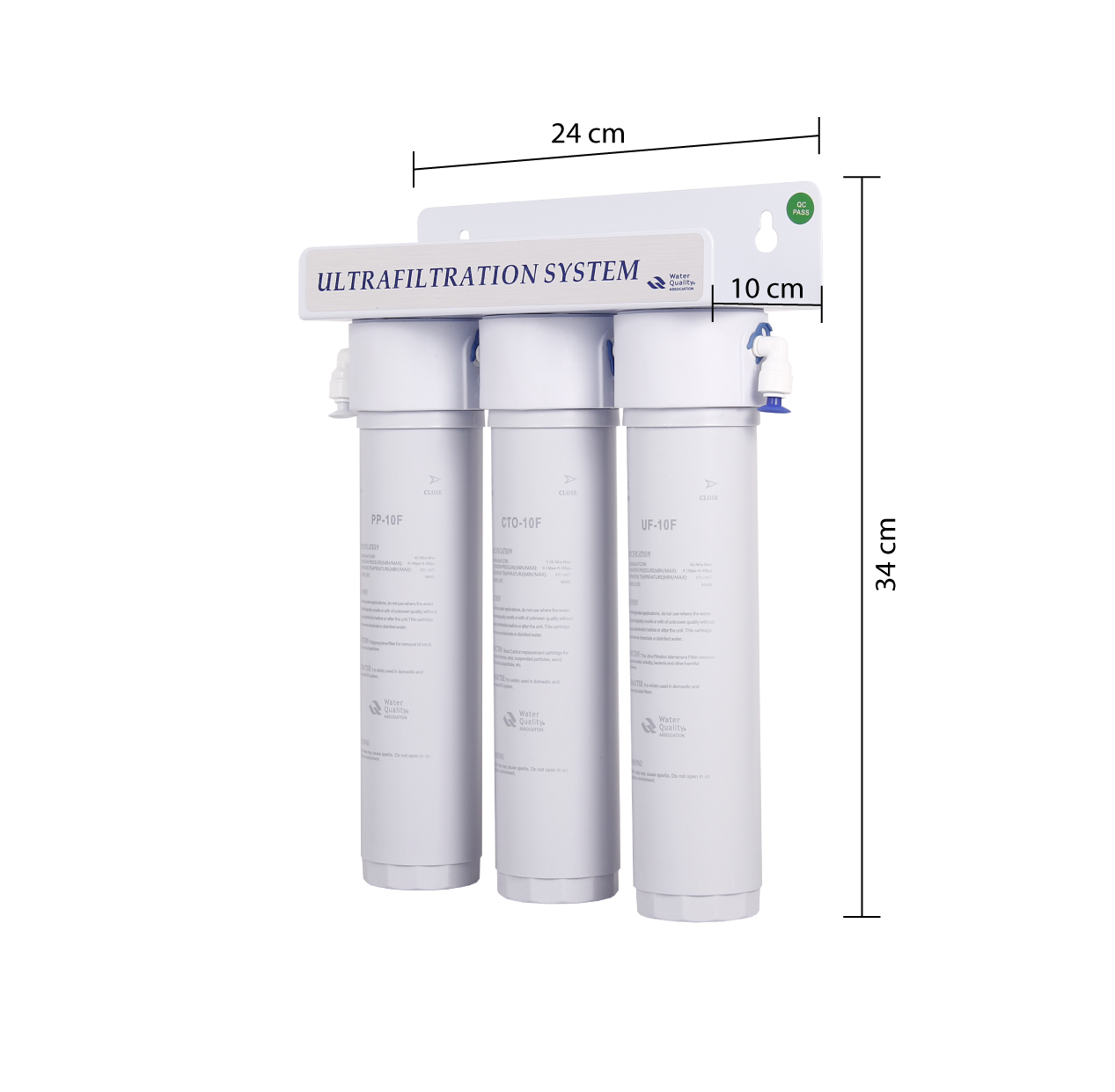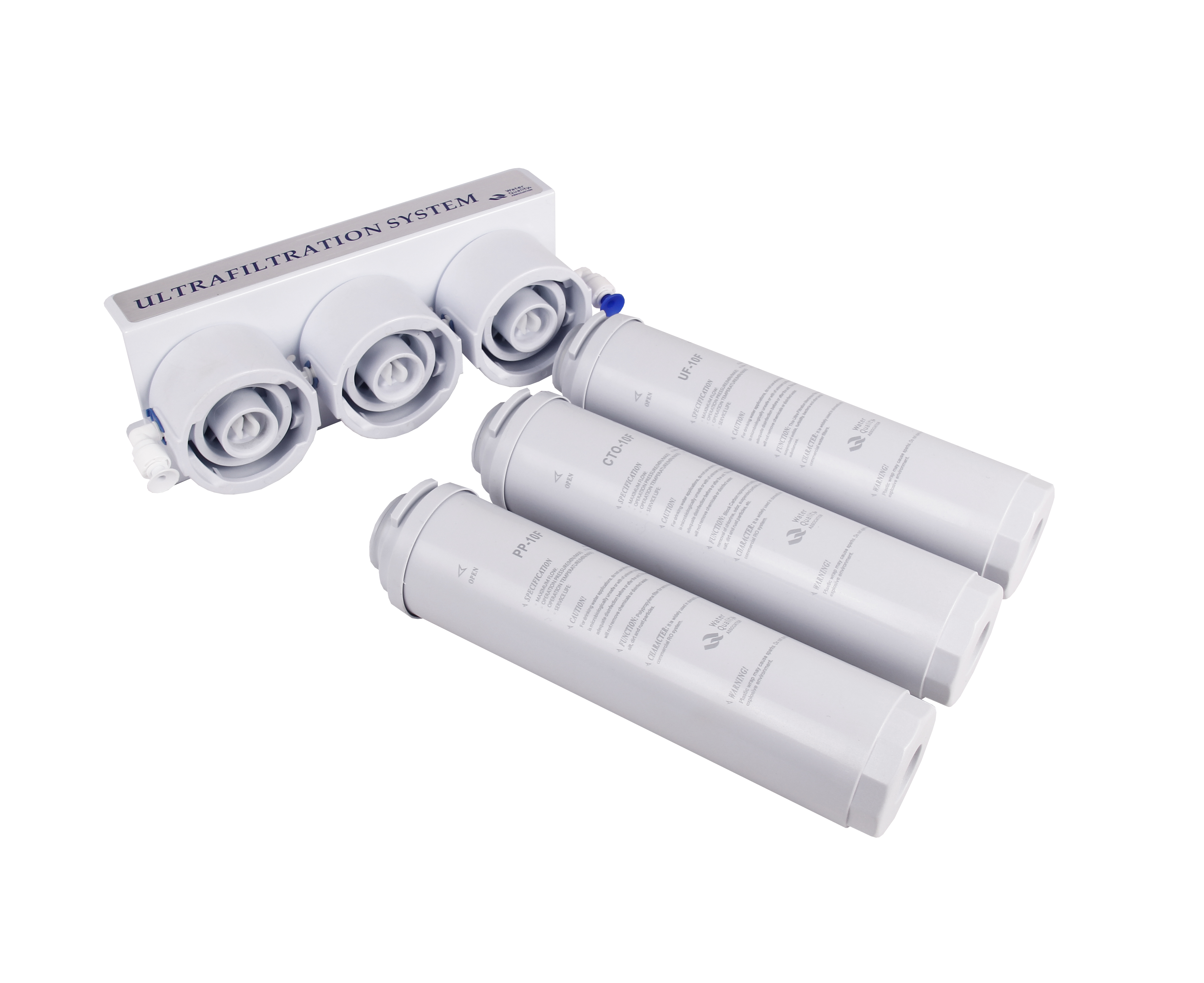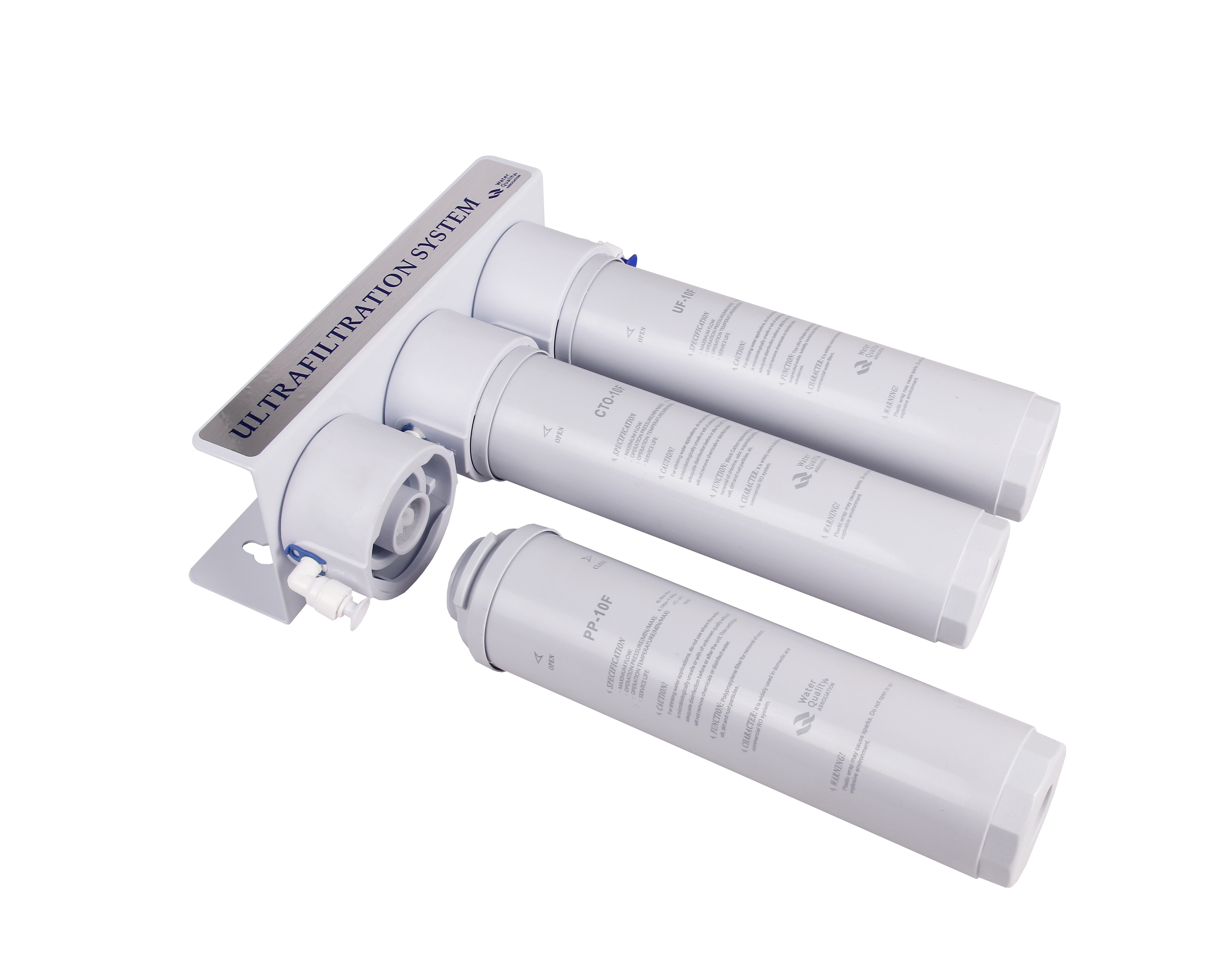 TrioPure on kompaktne ja tõhus ultrafiltratsioonisüsteem, mis tagab kõrgekvaliteedilise joogivee koduseks kasutamiseks. Kolmeastmeline filtreerimine – mehaaniline eelfilter, aktiivsüsi ja ultrafiltratsioonimembraan – eemaldab veest tõhusalt peened osakesed, kloori, ebameeldiva lõhna ja bakterid, säilitades samal ajal vee looduslikud mineraalained.