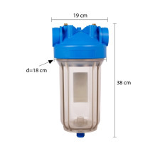 Kirjeldus. BIG BLUE MONO 10" on üheastmeline kasseti korpus SX (DOE) kassettidele välisläbimõõduga 4,5". PS PM versioon tarnitakse korkidega pea- ja kolbiosadele ning on ette valmistatud manomeetrite ja äravooluklapi ühendamiseks (seadmed ei sisaldu komplektis).