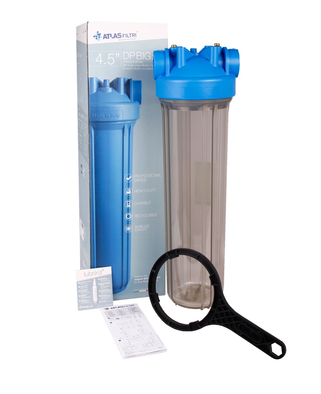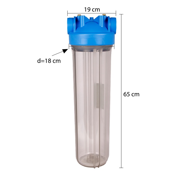 Kirjeldus. BIG BLUE MONO 20" on üheastmeline kasseti korpus SX (DOE) kassettidele välisläbimõõduga 4,5". PS PM versioon tarnitakse korkidega pea- ja kolbiosadele ning on ette valmistatud manomeetrite ja äravooluklapi ühendamiseks (seadmed ei sisaldu komplektis).
