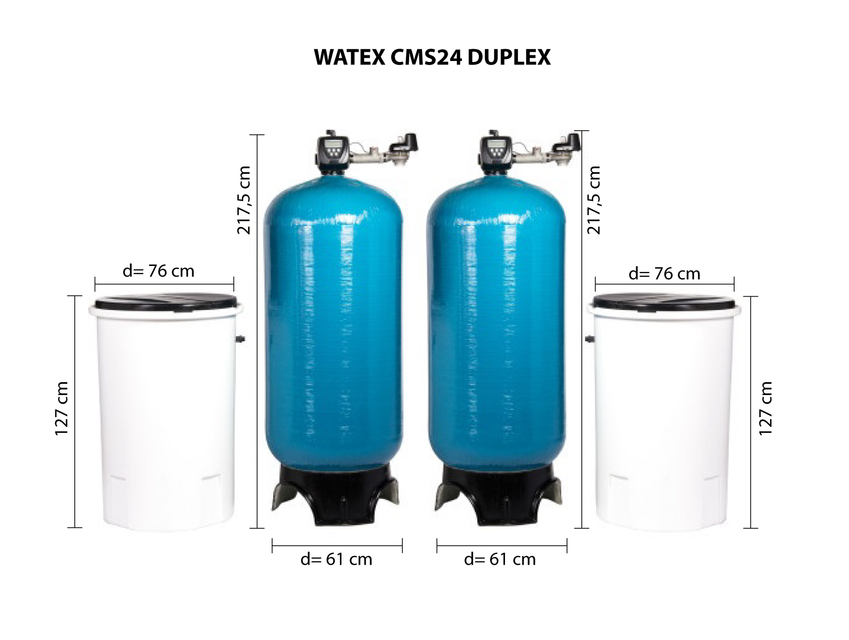 Lahendus veekvaliteedi parandamiseks suure veetarbimisega töökohtades või pideva veevarustuse ja püsiva veekvaliteedi tagamiseks pika aja jooksul on WATEX CMS DUPLEX veepehmendussüsteemid, mis pehmendavad vett ja eemaldavad rauda ioonvahetusvaikudega, mis on regenereeritakse soolvee (NaCl) lahusega.