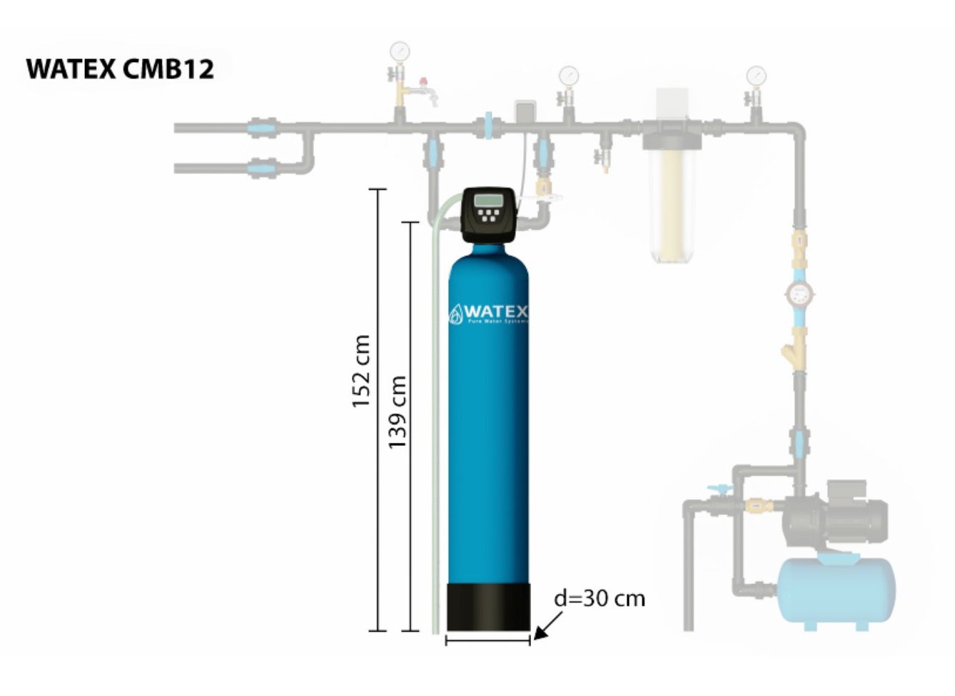 WATEX CMB12 sobib ideaalselt kasutamiseks pehmendite või orgaaniliste ainete eemaldamise filtrite eelfiltrina, eriti juhul, kui vee kvaliteeti mõjutab spetsiifiline lõhn.