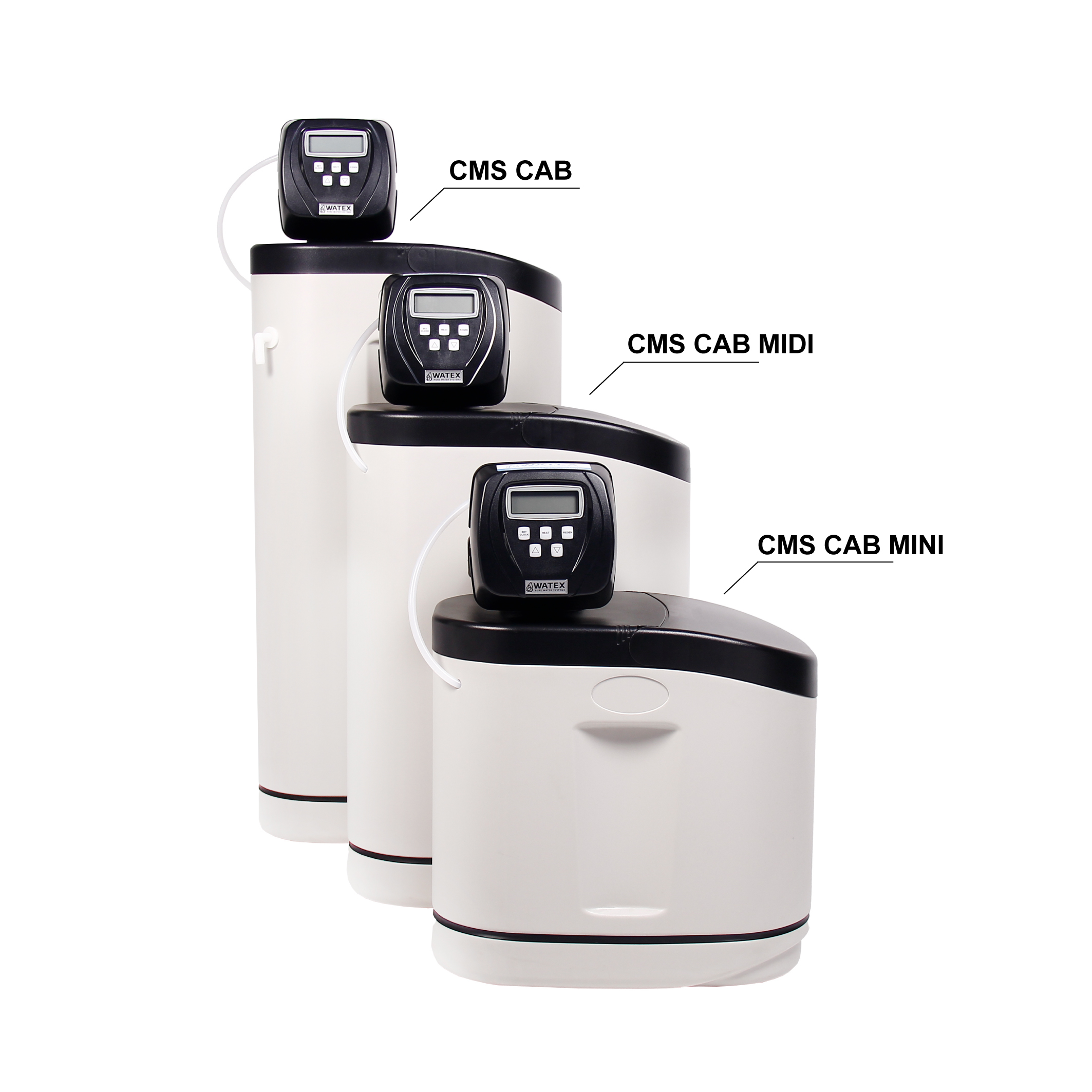 Filtreerimiskeskkonna (ioonvaikude) regenereerimiseks kasutatakse reaktiivi (NaCl või soolatabletid). WATEX CMS CAB seadmete regenereerimisprotsessides tekkinud reovesi saab juhtida otse bioloogilisse reoveepuhastisse. WATEX CMS CAB koosneb filtrikolonnist, juhtventiilist ja soolapaagist. Filtrikolonn on täidetud ioonivahetusvaiguga (katioonne), mis vähendab karedust ja raua kontsentratsiooni vees. Juhtventiil teostab automaatset regenereerimist. Soolapaak täidetakse vaigu regenereerimiseks reagendiga (NaCl, soolatabletid). Filtreerimisvahendite maht arvutatakse vaigude koguse ja toorvee kvaliteedi järgi.