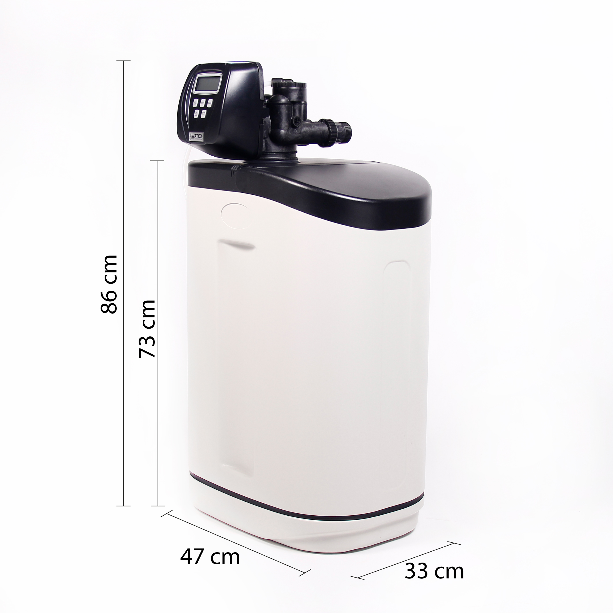 WATEX CMS CAB GREY on varustatud Clack WSCI1 juhtventiiliga, sisseehitatud voolumõõturiga, mis teostab filtreerimiskeskkonna regenereerimist vastavalt veetarbimisele. Voolumõõtur säästab vett ja soola, mida kasutatakse filtri regenereerimiseks. Ventiilile saab paigaldada möödaviigu torustiku, mis võimaldab hõlpsalt hooldustöid teha. Juhtventiil salvestab elektrikatkestuse korral kogu teabe. Seadmel on palju parameetreid, mida saab vastavalt vajadusele reguleerida, näiteks pesuaeg, sagedus, reaktiivi tarbimine jne.