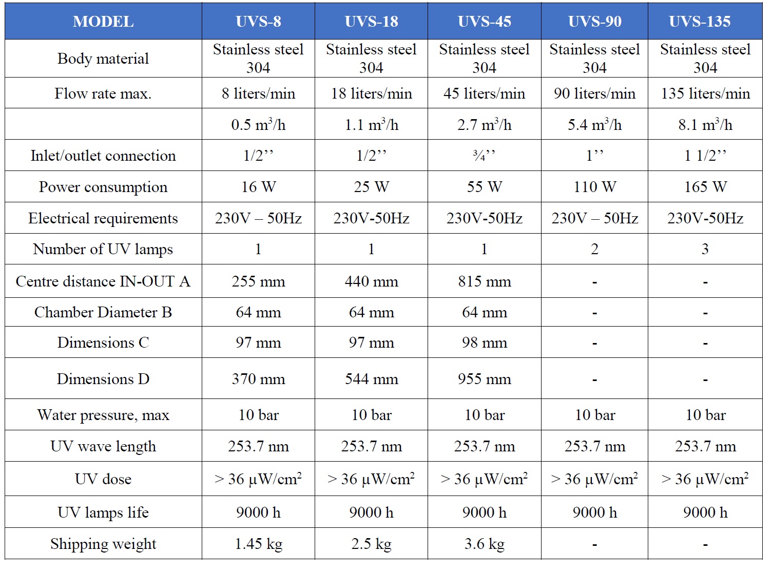 Seadme tehnilised parameetrid | Mõõtühik | Mudel WATEX UVS45 |