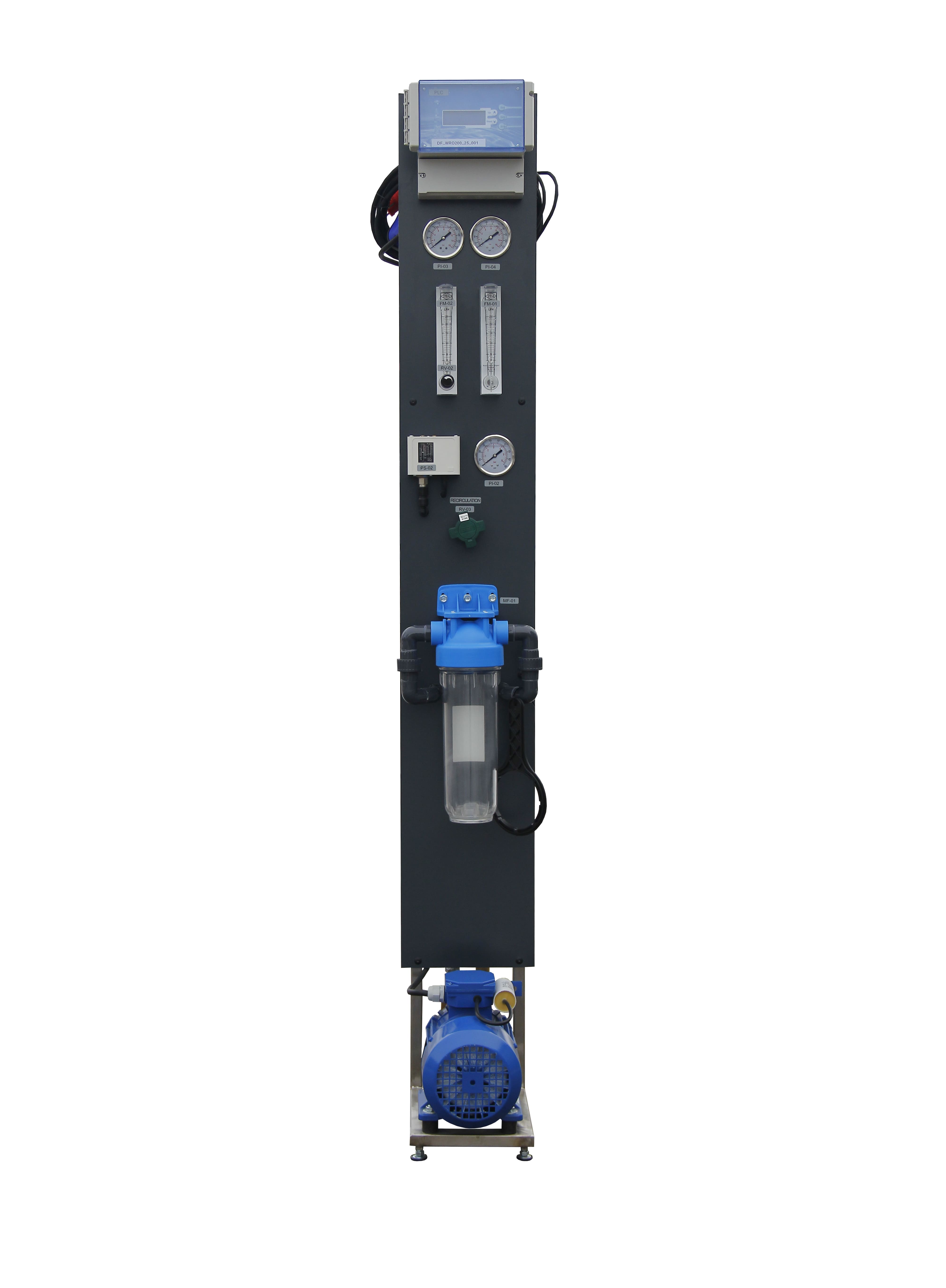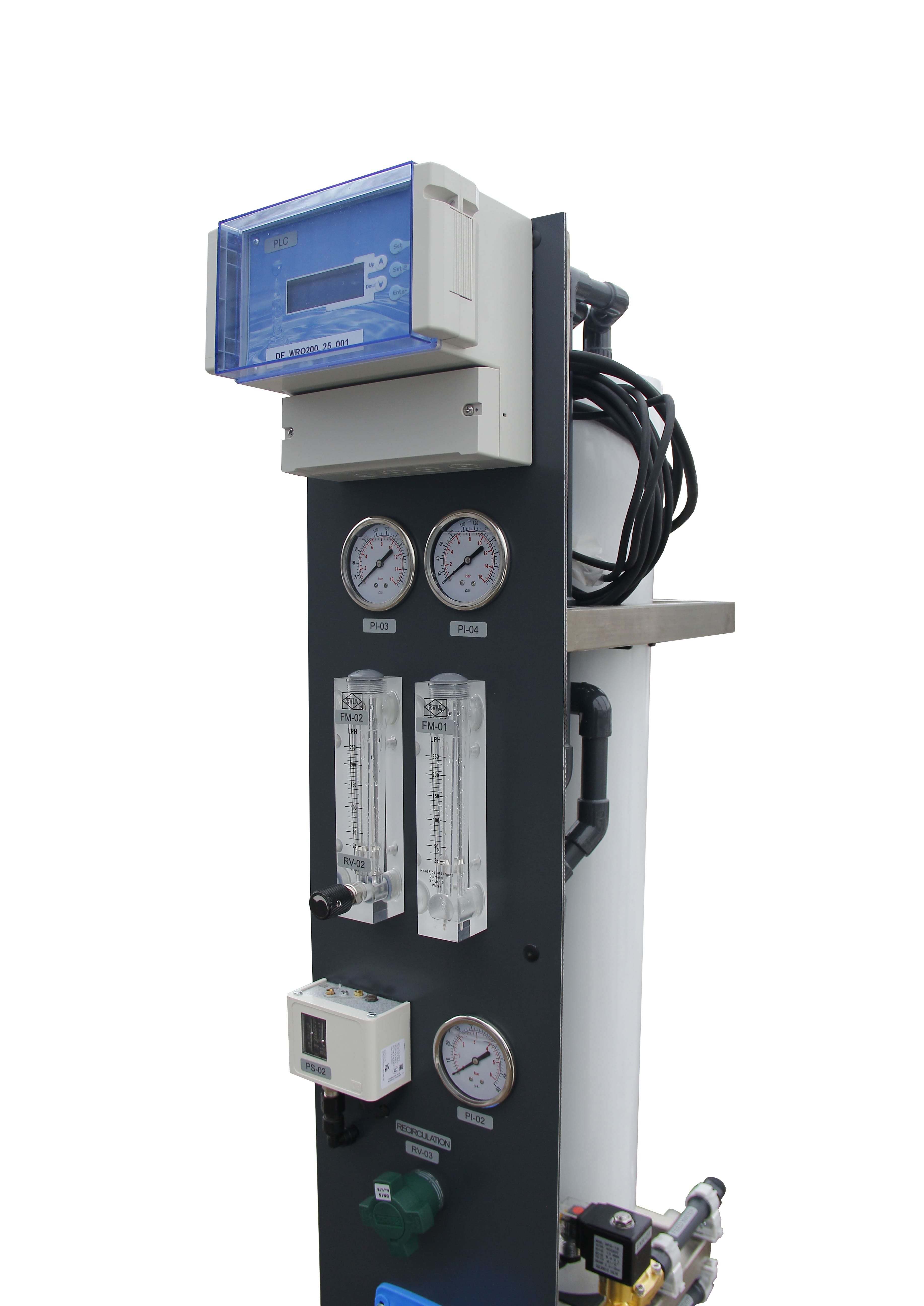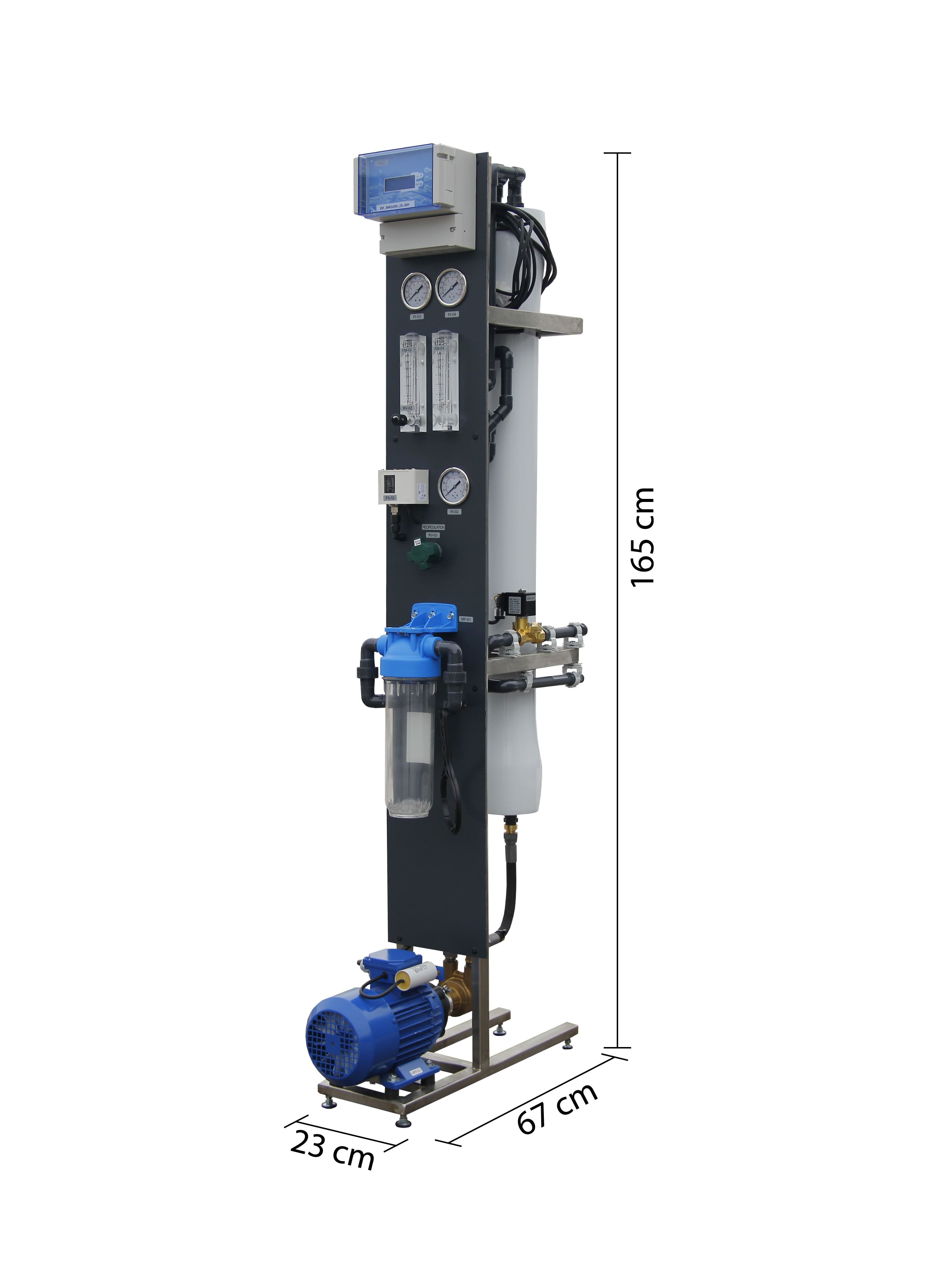• Pressure indicators (inlet, after pump, concentrate)