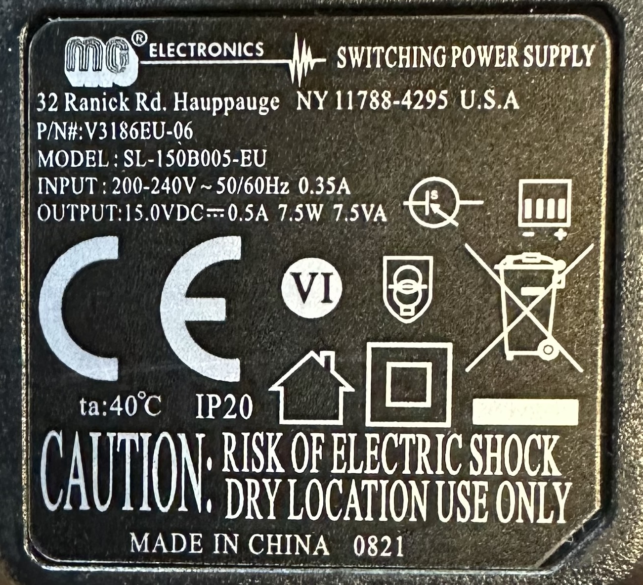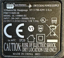 WS1 AC Adapter (Transformer) 200-240V-15V European