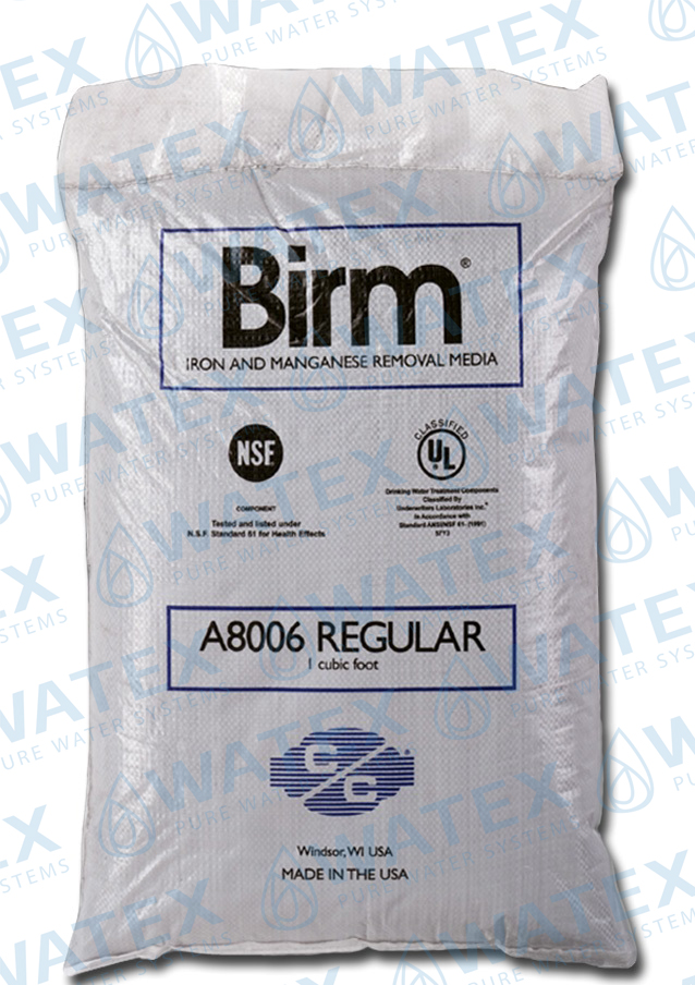 Birm® is an efficient and economical media for the reduction of dissolved iron and manganese compounds from raw water supplies. It may be used in either gravity fed or pressurized water treatment systems. Birm acts as an insoluble catalyst to enhance the reaction between dissolved oxygen (D.O.) and the iron compounds.