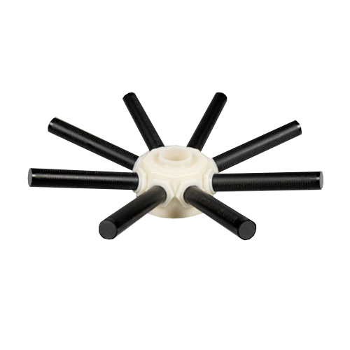 Clack top mount hub and lateral systems are designed primarily for use with top mount water softeners or filter valves. The top mount hub and lateral series is designed to accommodate 14" - 36" diameter fiberglass mineral tanks with 4" - 6" top openings. The top mount hub and lateral series consists of an ABS hub and 8-PVC slotted laterals with ¾" threaded adapters. The hub is available with a number of openings to accommodate different riser pipe diameters. To install, simply solvent weld or thread the riser pipe into the hub and insert it into the tank through the top opening. Thread the laterals into the hub and extend the hub and laterals to the bottom of the mineral tank.