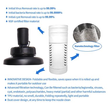 Integreeritud filter võimaldab turvaliselt kasutada vett looduslikest allikatest — jõgedest, järvedest ja ojadest.