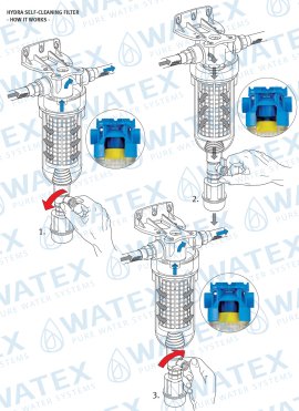 Rõhukadude korral loputatakse filter. Seda saab jälgida paigaldatud manomeetritega enne ja pärast filtrit. Läbipaistev korpus hõlbustab saastumise määra hindamist.