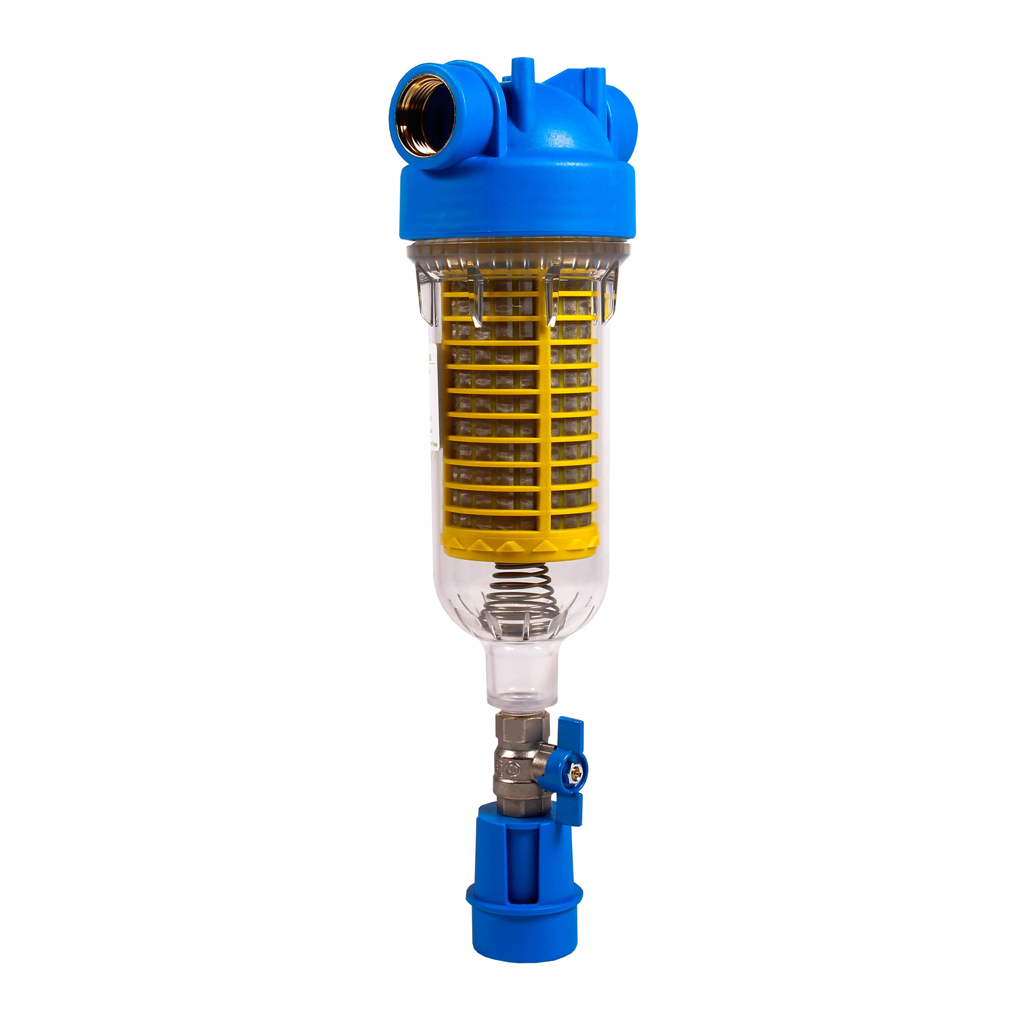 Kui filter on ummistunud, avage alumine ventiil ja loputage pinnale kogunenud muda, liiv ja muud sademed. Vesi juhitakse otse kanalisatsiooni või eraldi mahutisse.