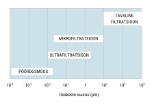 Filtreerib kuni 0,01 µm – eemaldab bakterid, viirused, hägususe ja peenosakesed